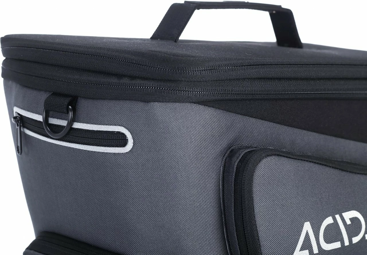 Ordentlich Platz fĂĽr dein Gepäck – dank ausrollbarer Seitentaschen und vergrößerbarem Hauptfach entscheidest du ĂĽber das Volumen. Die ACID Fahrradtasche TRUNK 8+7 RILink ist mit allen ACID und CUBE Gepäckträgern kompatibel, verfĂĽgt ĂĽber einen längenverstellbaren Schultertragegurt, reflektierende Elemente und eine Mesh-Einstecktasche. Und natĂĽrlich ist sie dank praktischer RegenhĂĽlle auch bei schlechtem Wetter einsatzbereich. Ehrensache.