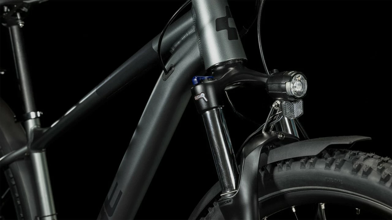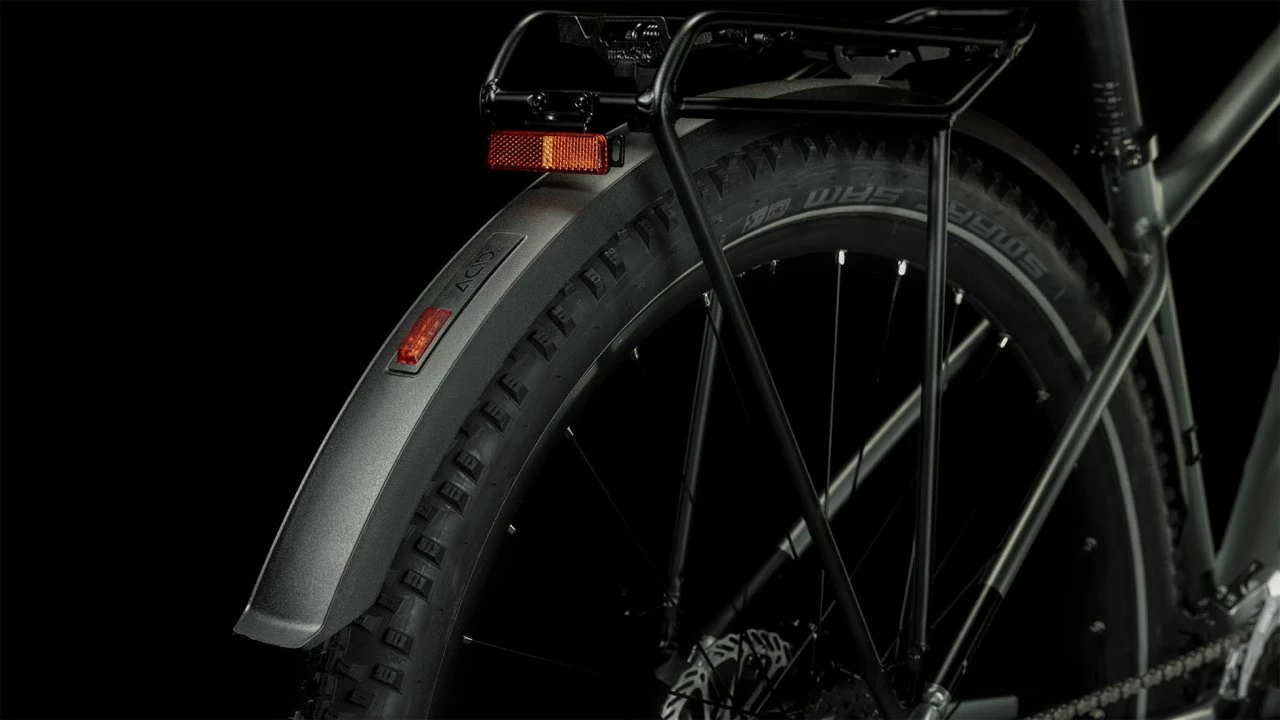 Dieses eine Bike, das wirklich alles kann – gibt es das? Gibt es, sagen wir bei CUBE, und es heißt Aim Race Allroad. Wir haben ihm jedes nur erdenkliche Zubehör spendiert: Schutzbleche, Beleuchtung, Gepäckträger und Seitenständer. Somit liefert es auf dem täglichen Weg ins Büro ebenso ab wie bei der Erledigung von Einkäufen in der City. Und dank 100 mm Federgabel und hydraulischen Scheibenbremsen liest es dir auch beim Offroad-Einsatz am Wochenende jeden Wunsch von den Augen ab. Dazu kommen griffige, komfortabel dahinrollende Reifen und eine Schaltwerk mit hoher Übersetzungsbandbreite. Der Aim Allroad Rahmen setzt in Sachen Vielseitigkeit neue Maßstäbe. Er kommt inklusive Schutzbleche, Gepäckträger und Lichtanlage daher, sodass du direkt aufsitzen und losradeln kannst. Außerdem haben wir ihm ein geschraubtes Tretlager gegeben und die Züge ins Innere verlegt, damit sie ihre Aufgabe lange machen und leicht gewartet werden können. Die Aufnahme für eine Flat Mount Scheibenbremse ist nahtlos in die Seitenständeraufnahme integriert. Die überarbeitete Geometrie hat ein niedrigeres Oberrohr für noch zuverlässigeres Handling und lässt viel Platz für breite, griffige, komfortabel rollende 2.25 Zoll Reifen. Auch haben wir unser SizeSplit System jetzt noch breiter aufgestellt – dadurch findest du mit Sicherheit die perfekt passende Kombination aus Aim Laufrad- und Rahmengröße für dich.