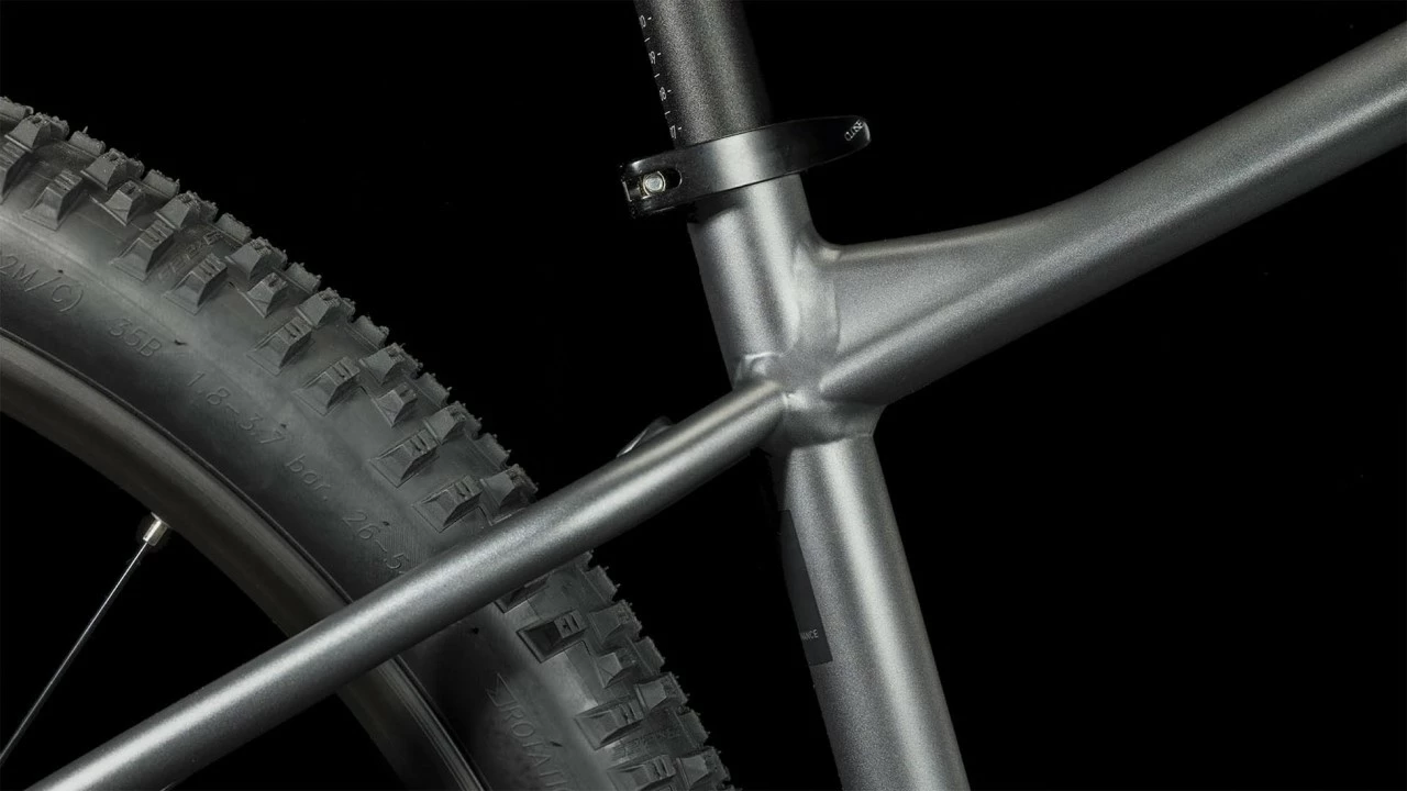 Volle Power schön und gut, aber man muss diese Power auch im Griff haben. Gut, dass wir das Aim SLX mit einer geschmeidig arbeitenden RockShox Federgabel mit Lockout ausgestattet haben, die Schläge und Ruckler vom Untergrund souverän abdämpft. Außerdem haben wir ihm leistungsstarke hydraulische Scheibenbremsen, ein konisch zulaufendes Steuerrohr und supergriffige 2.25 Zoll Reifen spendiert. Das Ergebnis ist ein kontrolliertes Fahrgefühl, egal wohin die Reise geht. Und für die breit gefächerte 2×9-Gang Schaltung ist keine Route zu lang und kein Anstieg zu steil – du hast per Fingerzeig immer den richtigen Gang zur Auswahl. Last, but not least kann der Rahmen mit einer versenkbaren Sattelstütze nachgerüstet werden. Keine Ausreden mehr, jetzt geht’s los! Der Aim Rahmen besticht mit seinem supercleanen Look. Verantwortlich dafür: die im Smooth Welding Verfahren hergestellten Verbindungen am Steuerrohr und Sattelstützenprofil. Außerdem haben wir ihm ein geschraubtes Tretlager gegeben und die Züge ins Innere verlegt, damit sie ihre Aufgabe lange machen und leicht gewartet werden können. Es gibt sogar eine Aufnahme für eine Flat Mount Scheibenbremse, die nahtlos in die Seitenständeraufnahme integriert ist. Montagepunkte für ACID Schutzbleche und Gepäckträger sind auch mit dabei. Die überarbeitete Geometrie hat ein niedrigeres Oberrohr für noch zuverlässigeres Handling und lässt viel Platz für breite, griffige, komfortabel rollende 2.25 Zoll Reifen. Auch haben wir unser SizeSplit System jetzt noch breiter aufgestellt – dadurch findest du mit Sicherheit die perfekt passende Kombination aus Aim Laufrad- und Rahmengröße für dich.