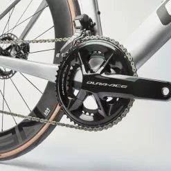 Wenn du auf Weltcup-Niveau fahren möchtest, macht Equipment den Unterschied aus. Wer stundenlang im Sattel sitzen möchte, der braucht eine präzise und verlässliche Schaltgruppe sowie einen möglichst widerstandslosen Antrieb. Damit deine Kraft nicht ins Leere geht haben wir fĂĽr dich eine Shimano Dura-Ace Di2 Komplettausstattung verbaut. Das fortschrittlichste Komponentensystem der Welt. Die HOLLOWGLIDE II 2×12 Kurbelgarnitur mit 52-36 Zähnen garantiert eine optimale Geschwindigkeitsabstimmung in jeder Situation. HOLLOWGLIDE verringert das Gewicht bei gleichbleibender Steifigkeit und sorgt so fĂĽr die bestmögliche KraftĂĽbertragung und blitzschnelle Schaltvorgänge. Eine Kurbelgarnitur ist jedoch nichts ohne eine stimmige Kassette. Auch hier haben wir eine 12-fach Dura Ace HYBERGLIDE+ auf den HG Freilauf aufgezogen. HYPERGLIDE+ hat im Offroad-Bereich neue MaĂźstäbe gesetzt und hat jetzt endlich Einzug in die Rennradwelt erhalten. Selbst bei Maximalbelastung wie im Sprint oder bei Anstiegen springt die Kette butterweich von Zahnkranz zu Zahnkranz, während du mit voller Kraft in die Pedale trittst. Die Dura Ace CS-R9200 Kassette biete in jedem Gang die maximale Effizienz und ist mit ihren 12 Blättern das MaĂź aller Dinge im Bereich der Rennradschaltungen. FĂĽr präzise Schaltvorgänge sorge das kabellose Dura Ace Shadow RD Schaltwerk im harmonischen Zusammenspiel mit dem Dura Ace FD-R9250 Umwerfer – Die schnellste Schaltung aller Zeiten. Der Akku ist unsichtbar im Rahmen verbaut und eine Hohl-Pin Kette spart zusätzlich Gewicht. Gesteuert wird dieses ingenieurstechnische Meisterwerk ĂĽber das wireless Dura Ace Di2 Cockpit. Die konkurrenzlose Ergonomie der Brems-Schalthebeleinheit sucht in Sachen Präzision seines Gleichen und lässt dich in Sekundenbruchteilen die Gänge wechseln. Ăśber die Shimano E-Tube App kannst du die Schalthebel zuweisen und zusätzlich vielen Feinabstimmungen die Schaltung genau auf deine BedĂĽrfnisse und Vorlieben einstellen.Â