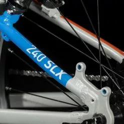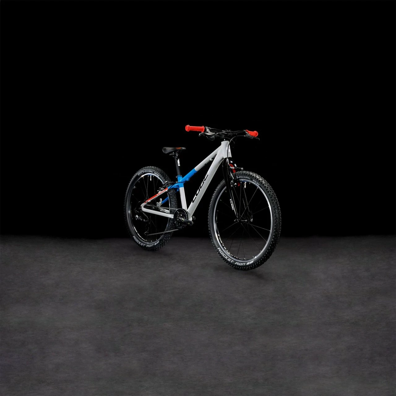 Mit dem Reaction 240 SLX verfolgen wir ganz bewusst einen minimalistischen Ansatz – zugunsten der Performance. Das zeigt sich vor allem bei den Details, zum Beispiel dem dünneren Lenker mit dünneren Griffen und der leichten, steifen Carbongabel. Das Ergebnis ist ein schnelles, agiles und sicheres Set-up für junge Mountainbike-Racer, das wenig Gewicht auf die Waage bringt. Außerdem haben wir eine breit gefächerte Microshift Schaltung verbaut, die präzise und reibungslos zwischen den 10 Gängen hin und her wechselt. Für zuverlässige Bremsmanöver und damit volle Kontrolle über das Bike und seine Geschwindigkeit auf dem Trail sorgen leichte, leistungsstarke V-Bremsen. Ein lebhaftes Handling, mit dem die Kids viel Selbstvertrauen tanken und an ihren Skills feilen können, versteht sich von selbst. Auf die Plätze, fertig, los! Wir bei CUBE tauchen bei der Entwicklung unserer Produkte stets tief in die Materie ein, deshalb besteht der Reaction 240 SLX Rahmen auch aus denselben hitzebehandelten 6061er-Aluminiumrohrsätzen wie unsere Performance-Erwachsenenmodelle. Und wir haben deren Form für das optimale Verhältnis von Steifigkeit zu Gewicht mit demselben mechanischen Formverfahren angepasst. Ein weiteres Highlight ist das austauschbare Schaltauge – dadurch müssen die Eltern junger Shredder nach einem kleinen Sturz nicht gleich den ganzen Rahmen kostspielig reparieren lassen. Wer sich noch mehr Grip, Komfort und Sicherheit wünscht, kann das Chassis dank genügend Platz auch mit breiteren Reifen ausrüsten.