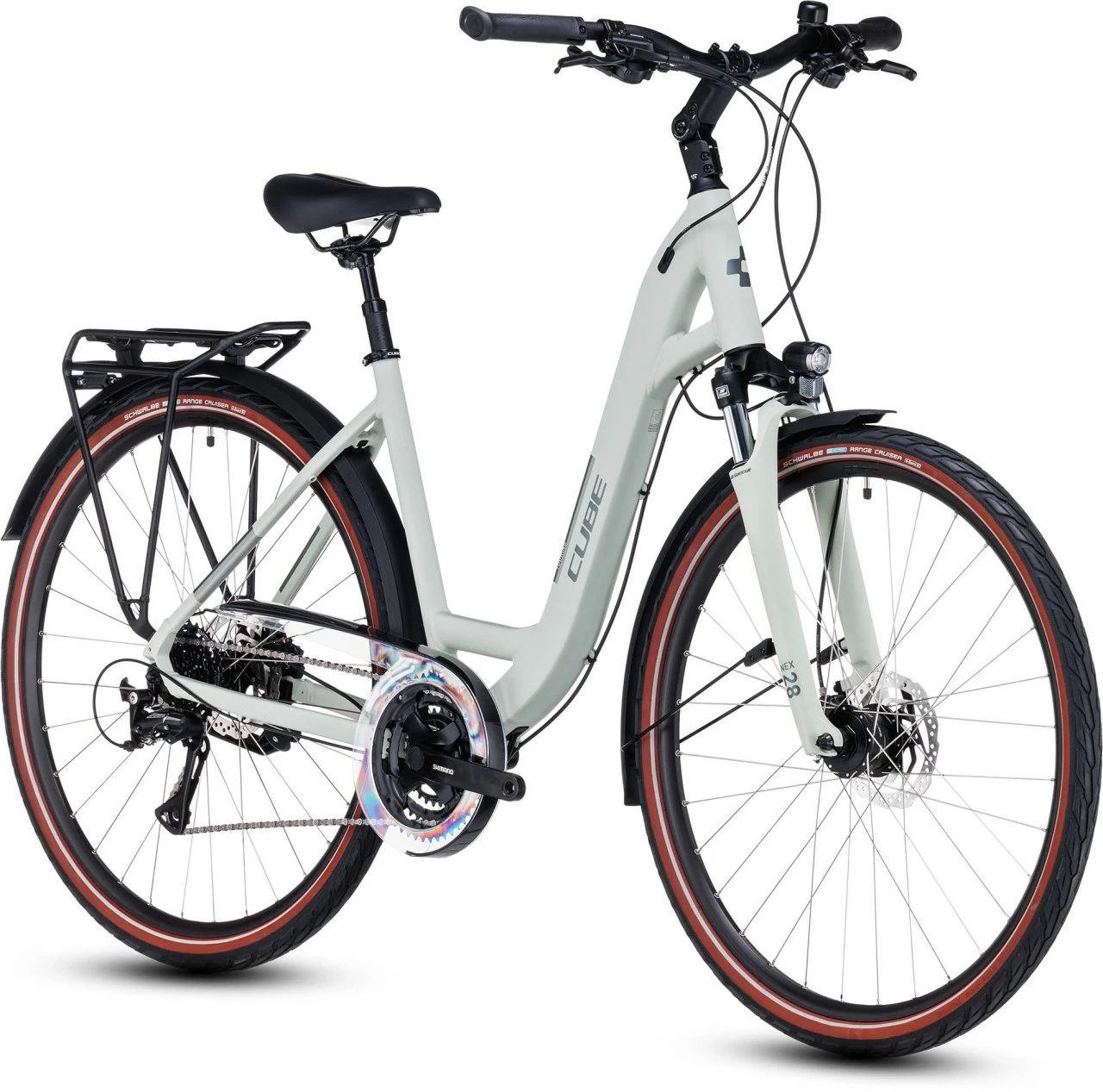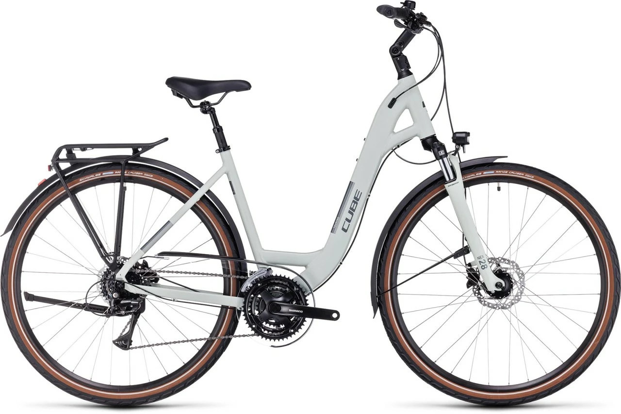 Das voll ausgestattete und auf höchsten Fahrkomfort ausgelegte Touring ONE bietet alles, was ein gutes Touring-Bike ausmacht – Horizonterweiterung inklusive. Selbst steile Anstiege lassen sich dank der einfach zu bedienenden Shimano 3×8-Schaltung enstpannt angehen. Dabei wechselst du den Gang ganz geschmeidig per Fingerzeig vom Lenker aus. Die leistungsstarken Scheibenbremsen verzögern das Bike bei Nässe um einiges besser als normale Bremsen – und machen das Bergabfahren damit viel sicherer. Außerdem haben wir für top Fahrkomfort auf holprigem Untergrund eine Federgabel und eine gefederte Sattelstütze verbaut. Ebenso mit dabei: extralange Schutzbleche, ein formschön integrierter Gepäckträger, ein Seitenständer und eine dynamogespeiste Lichtanlage. Fazit: Ob kurze Stadtrunde oder längerer Ausflug ins Grüne – das Touring ONE steht bereit! Das Herzstück unserer Touring Serie ist der hochwertige, leichte Rahmen aus doppelt konifizierten Aluminiumrohren. Dabei sorgt unsere Efficient Comfort Geometry für Effizienz, Fahrkomfort und ein agiles, intuitives Handling, was sich besonders an langen Tagen im Sattel bezahlt macht. Die Version mit tiefem Einstieg sieht nicht nur gut aus, sondern erleichtert auch das Auf- und Absteigen. Zusätzlich gibt es das Modell als sportlichen Trapezrahmen sowie als klassischen Herren-Diamantrahmen in fünf verschiedenen Größen. Da findest du mit Sicherheit die optimale Passform für dich und deine Ansprüche! Alle Rahmenformen sind mit einem eleganten Gepäckträger und ins Unterrohr verlegten Zügen ausgerüstet, damit die Schaltung dauerhaft präzise arbeitet und ohne großen Wartungsaufwand auskommt.