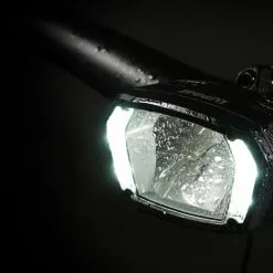 Die Lampe mit Tagfahrlicht, Abblendlicht und Fernlicht bietet blendfreies Licht und Sichtbarkeit im Straßenverkehr sowie uneingeschränkte Sicht abseits der Straße und auf Trails. Über den Sensor schaltet die SL X automatisch von Tagfahrlicht auf Abblendlicht. Mit der Kabelfernbedienung lässt sich zwischen Abblend- und Fernlicht wechseln. Die Tasten der für E-Bikes entwickelten Tastenschelle leuchten grün und blau (Abblend- & Fernlicht).
