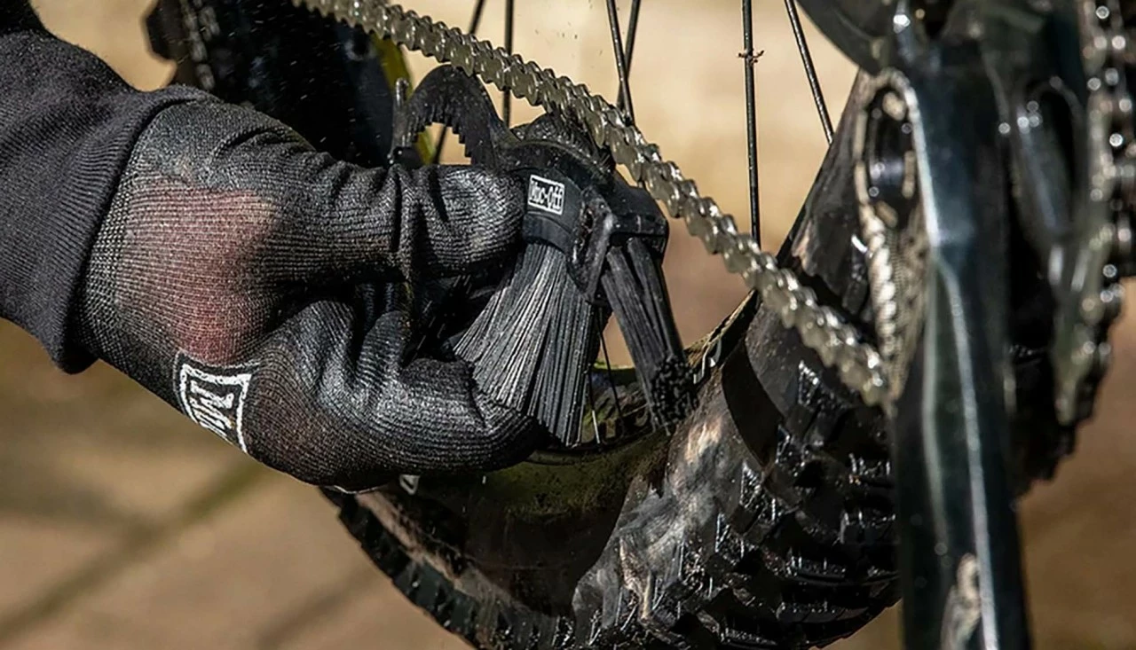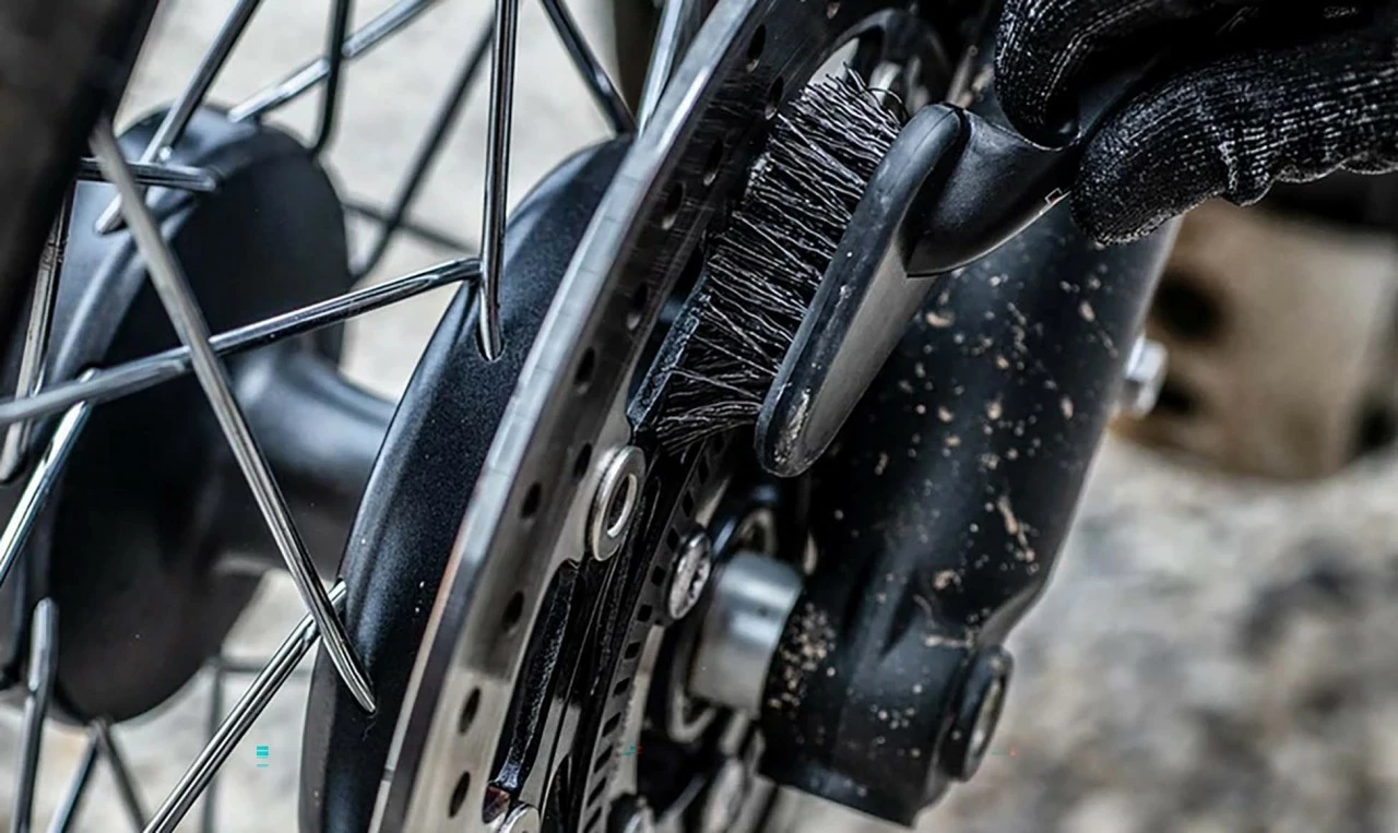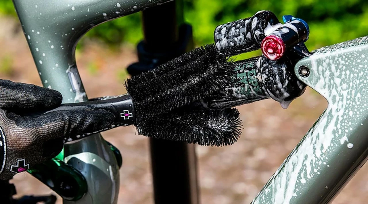 – die Zweizackige Bürste ist ideal, um schwer zugänglichen Schmutz an Speichen, Scheiben, Stoßdämpfern, Kurbeln, Gestängen und Pedalen zu erreichen