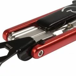Kompaktes Multi Tool mit zwölf Funktionen. Das Werkzeug besteht aus fünf Innensechskantschlüsseln (Hex 2/3/4/5/6 mm), einem Rundinnensechskantschlüssel 25, einem Phillips Kreuzschraubendreher Größe 1 sowie einem 5 mm Schlitzschraubendreher. Mit diesen Werkzeug können sie alle wichtigen Schrauben am Fahrrad bedienen.