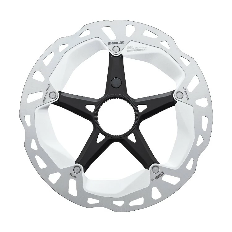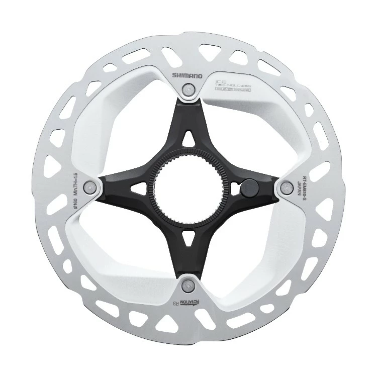SHIMANO RT-EM810 Scheibenbremsscheiben für Geschwindigkeitssensorsysteme sorgen für kraftvolle und konstante Bremsleistung unter allen Fahrbedingungen. Der ICE TECHNOLOGIES FREEZA-Rotor reduziert den Wärmestau im Bremssystem deutlich, um auch auf den steilsten Abfahrten ein gleichmäßiges Hochleistungsbremsen zu gewährleisten. Das CENTER LOCK Montagesystem von SHIMANO macht das Ein- und Auslegen von Rotoren dank der Wirbelsäulenhalterung und des Verriegelungsrings schnell und einfach.