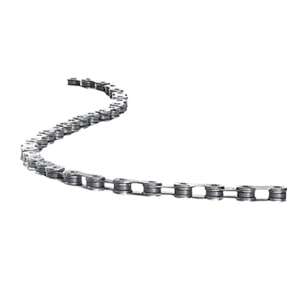 Bei der Kette SRAM PC-1170 kommen äuĂźere Laschen mit stark ausgeformten Kanten zum Einsatz – so schaltet die Kette leichter und läuft leiser. Hartverchromte Niete tragen zum langen Leben der Kette bei.